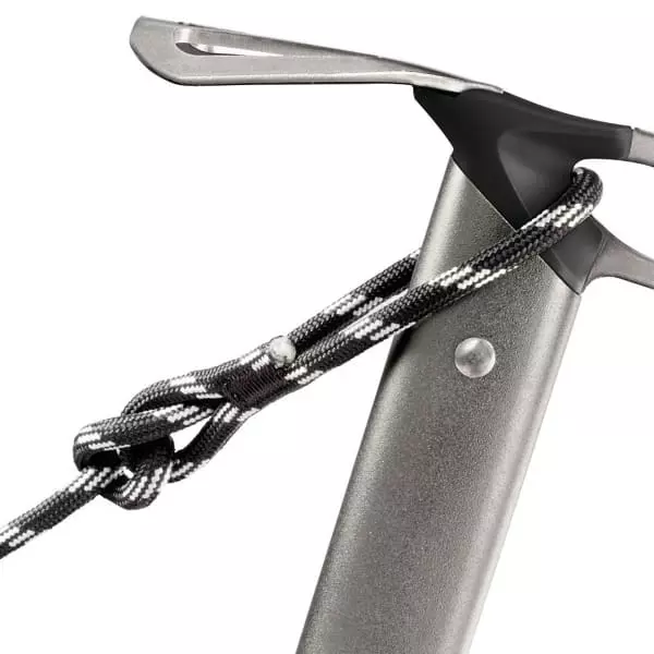 – S’adapte à tous les types de piolets équipés d’un trou pour le passage d’un mousqueton ou d’une sangle.
