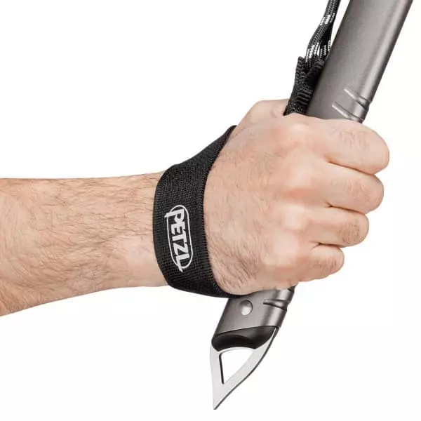 Composé en matière polyamide et d’une longueur réglable de 50 à 75 cm, elle s’adapte à tous les types de piolets équipés d’un trou pour le passage d’un mousqueton ou d’une sangle. Très rapidement détachable en défaisant simplement le nœud, elle se fait vite oublier grâce à un poids très léger.