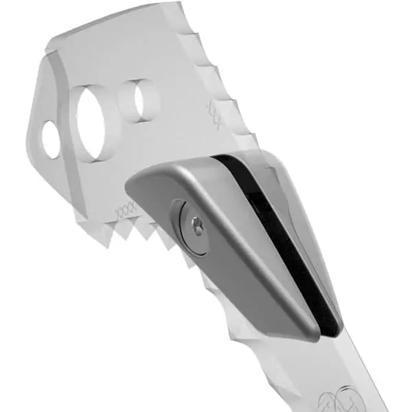 Lors de la frappe, l’équilibre du piolet est amélioré pour des ancrages précis en glace dure. La géométrie de ces masselottes optimise les coincements de la lame dans les fissures, tandis que leur conception amovible permet d’ajuster la technicité et le poids du piolet selon la course envisagée.