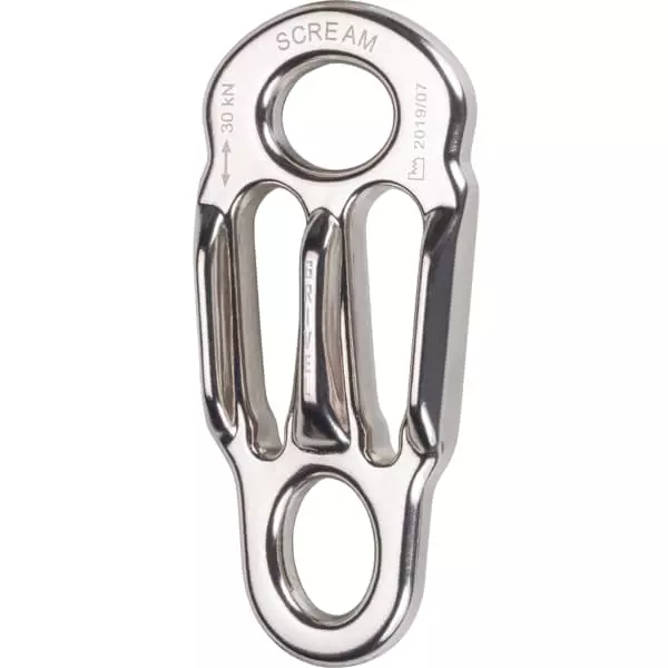 Spécialement conçue pour les petites cordes (5-8 mm), la SCREAM de Grivel est une plaque d’assurage polyvalente ultra-légère et compacte qui rend bien des service aux alpinistes.