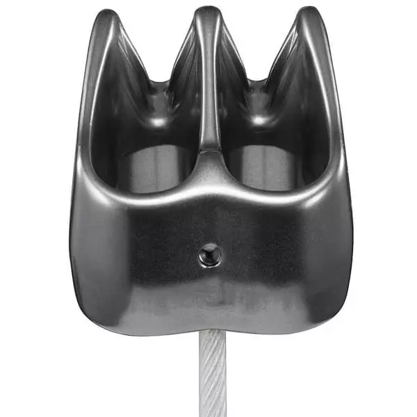 – Design conçu pour préserver les cordes. Les deux brins de corde sont séparés lors de l’assurage et du rappel sur corde à double/jumelée. Ceci évite qu’elle ne vrille ou ne fasse des nœuds