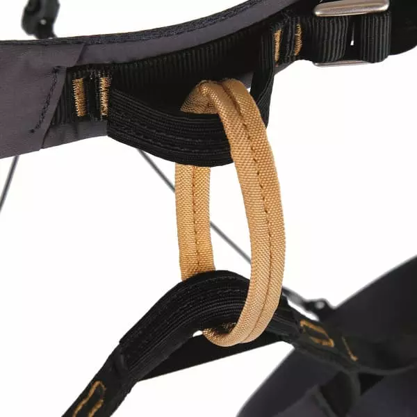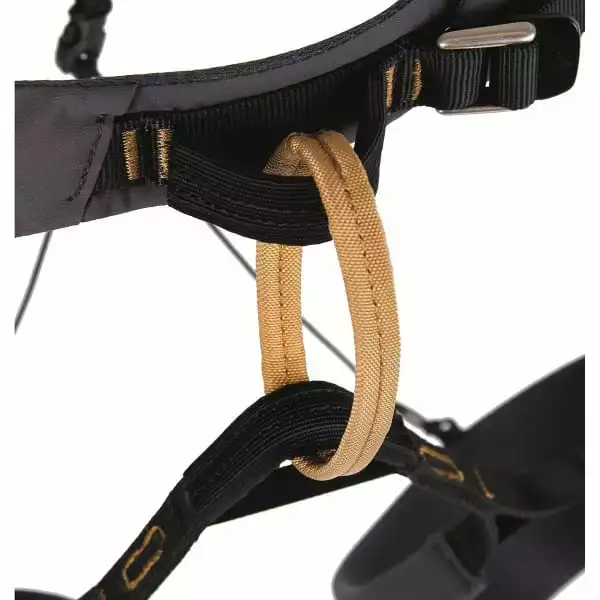 - Quatre boucles de pinces à glace : permettent de multiples options d’accrochage des broches à glace et rendent ce harnais compatible avec les les lignes de glace les plus difficiles.