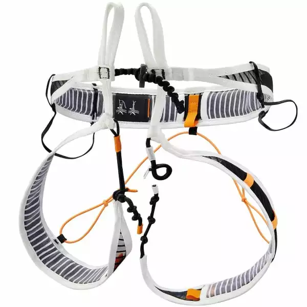 - seulement 100 g (taille M) lorsqu’il est dépourvu des mousses de confort et 130 g avec. L’extrême légèreté et le taillant près du corps procurent une totale liberté de mouvement permettant au harnais de se faire oublier,