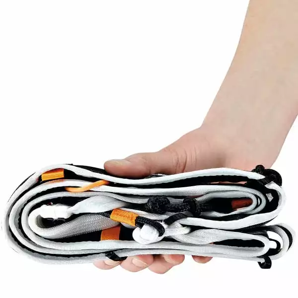 - Contient également une housse minimaliste pour ranger le harnais lorsqu’il est utilisé sans mousses