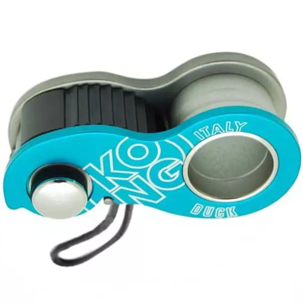 Conçu pour cordes à simple ayant un diamètre compris entre 8 et 13 mm, le DUCK de chez Kong est le premier bloqueur au monde en mesure de fonctionner même sur des sangles plates et tubulaires de 10 à 15 mm de largeur (même si elles ne sont pas homologuées pour la progression).