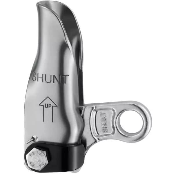 Le modèle SHUNT de PETZL est un bloqueur de contre-assurage.