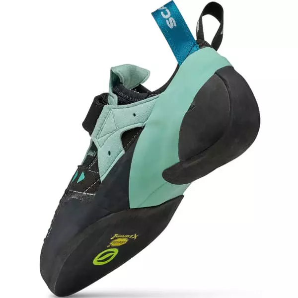 Sa construction avec talon en légère pointe offre un confort de haut niveau tout en apportant soutient au mouvement grâce à une forme légèrement asymétrique et cambrée. Avec une fermeture à velcros l’enfilage est facile tandis que la base en caoutchouc Vibram XS Grip 2 promet une excellente tenue en friction comme en grattonnage pour celles qui cherchent la performance.