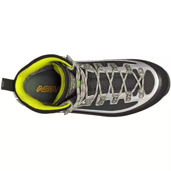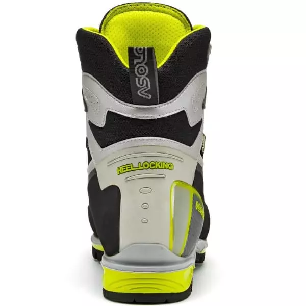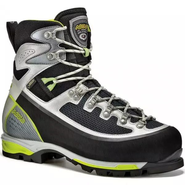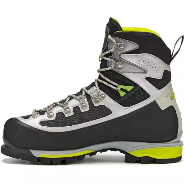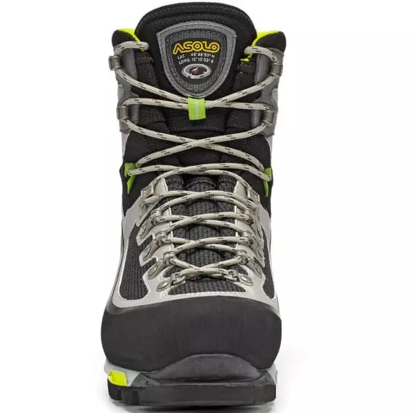 Équipée d’une tige en Schoeller K-Tech Micro Tech et microfibre, cette chaussure ajoute une languette ajustable pour une protection et un confort maximum, tandis qu’elle associe une doublure Gore-Tex Insulated Comfort Footwear pour garantir isolation, imperméabilité et respirabilité. Concernant la semelle, on retrouve une semelle intermédiaire en PU qui garantit stabilité, rigidité et munitions, tandis que la semelle Asolo/Vibram Vertical possède un design autonettoyant pour un soutien, une adhérence et une stabilité en torsion maximum, tout en étant adaptables pour les crampons automatiques.
