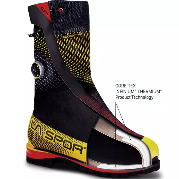 - Gore-Tex® Infinium™ Thermium™ Insulation Technology qui enveloppe la coque avant, y compris l’inter-semelle: augmente la thermicité au niveau des orteils, favorisant l’utilisation de la chaussure même en situation statique