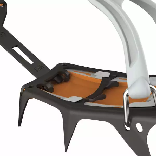 Sa construction intègre un châssis d’épaisseur réduite pour minimiser son poids. Bénéficiant du système de fixation Leverlock Universel, il s’adapte à la plupart des chaussures de randonnée glaciaire et d’alpinisme avec débord arrière. En plus de ses pointes avant horizontales qui assurent une bonne portance en neige dure, il est livré avec le système ANTISNOW, qui limite la formation de sabots de neige, quel que soit l’état de la neige.