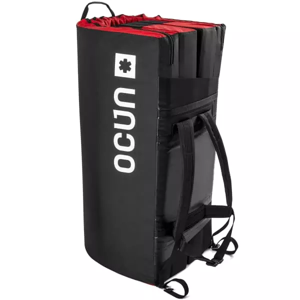 Ce crash pad facilite grandement son transport avec la présence de bretelles rembourrées, en plus de sa capacité à se plier sur lui-même pour minimiser son encombrement dans le dos.