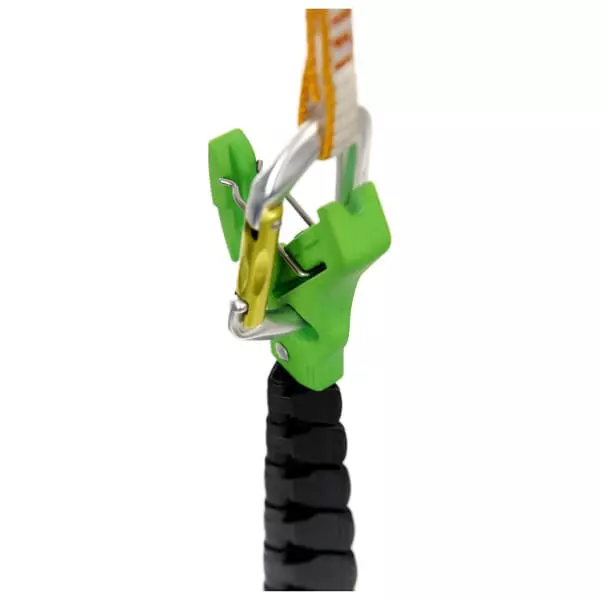 Allant de 55 à 2,38 cm, elle permet de clipper votre mousqueton tandis qu’elle profite d’une fonction d’accrochage intégrée pour récupérer la corde et de retrait de la dégaine/mousqueton.