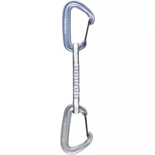 La dégaine MINIWIRE QUICKDRAW 12cm est la plus légère chez BLACK DIAMOND. Elle est idéale pour économiser chaque gramme dans les longues voies exigeantes en matériel et les couennes athlétiques.