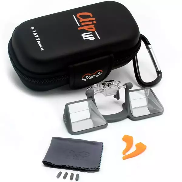 Facile d’utilisation grâce à une position Up/Down, cette paire de lunettes est équipée de prismes trapézoïdaux qui offrent une vision plus large sur le grimpeur. Ses positions baissée/relevée aident à activer et désactiver le dispositif avec une seule main.
