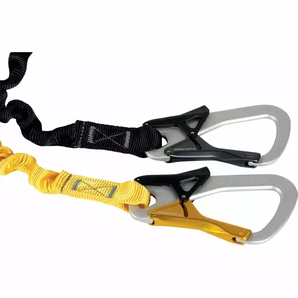 Se fixant facilement au harnais, cet accessoire dispose de bras élastiques et résistants de 50 cm de long qui peuvent s’allonger jusqu’à 90 cm. Des mousquetons à main Keylock de type “K” sont fournis avec.