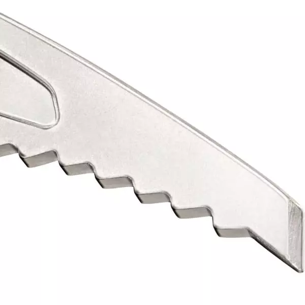 – à la lame en acier dentée fine et robuste en extrémité (3 mm)