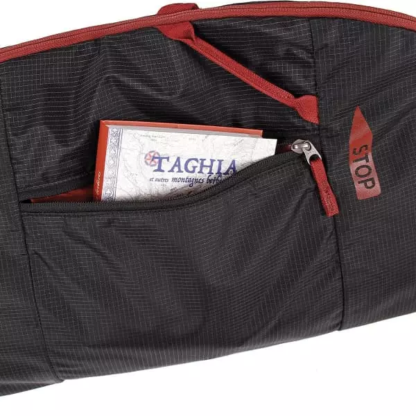 En plus d’une corde de 80 m, ce sac peut transporter un harnais et des chaussons aussi.